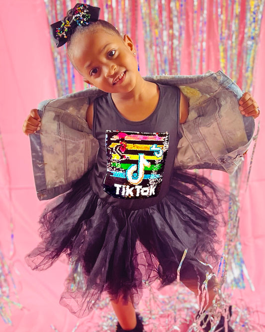 TIK TOK SEQUIN TUTU SLEEVELESS DRESS